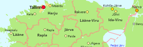 Die Kreise und alle Städte in Estland.