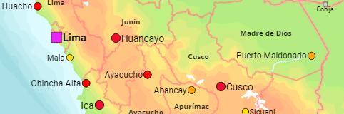 The regions of Peru as well as all cities with more than 10,000 inhabitants.