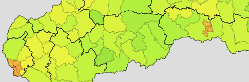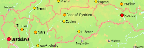 The regions of Slovakia as well as all cities and towns exceeding 15,000 inhabitants.
