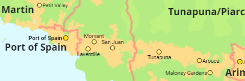 The municipalities as well as all cities and urban communities in Trinidad and Tobago with more than 10.000 inhabitants.