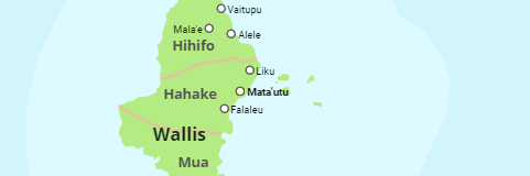 The islands and districts of Wallis and Futuna as well as all villages with more than 500 inhabitants.