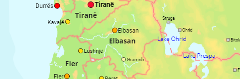 Die Präfekturen von Albanien und alle Städte mit mehr als 5.000 Einwohnern.