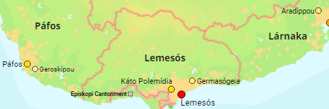 Die Teilgebiete, Garnisonen und Dörfer der souveränen britischen Militärbasen Akrotiri und Dekelia.