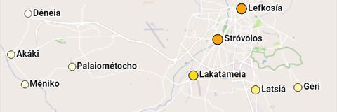 Die Bezirke von Nordzypern sowie alle Orte mit mehr als 2.000 Einwohnern.