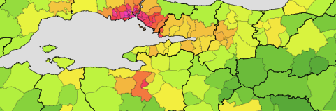 Die Einwohnerzahlen der Provinzen und Bezirke der Türkei.