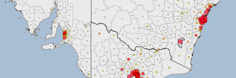 The states and territories of Australia as well as all urban agglomerations (significant urban areas).
