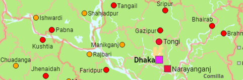 The divisions and districts of Bangladesh as well as all cities, municipalities and urban places of over 20,000 inhabitants.