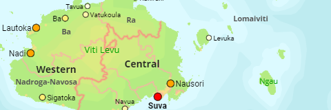 The divisions and provinces of Fiji as well as all towns and urban areas with more than 1,000 inhabitants.