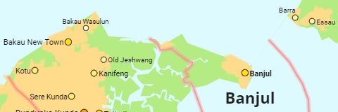The population of the local government areas and districts of Gambia.