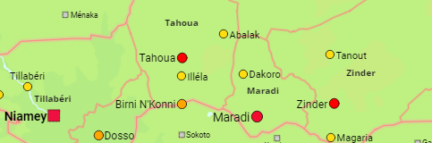 The regions of Niger as well as all cities and urban centers.