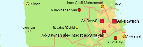 The municipalities of Qatar as well as all cities and localities with more than 1,000 inhabitants.