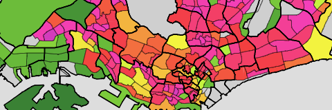 The population of the urban planning areas and subzones.