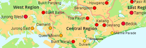 The regions of Singapore as well as all urban planning areas of more than 2,500 inhabitants.