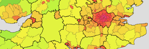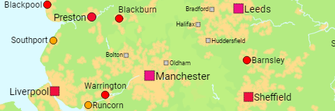 All English urban areas (i.e. more or less continuously built-up areas) with more than 20,000 inhabitants.
