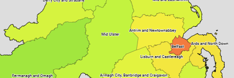 The population of the local government districts of Northern Ireland.