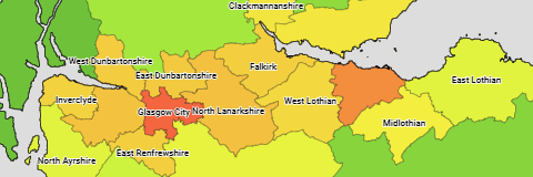 The population of the council areas of Scotland.