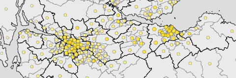 The local government districts and all cities and settlements with a population of more than 2,500.