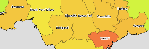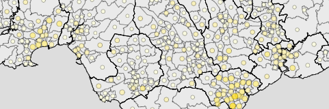The population of the districts and wards of Wales.